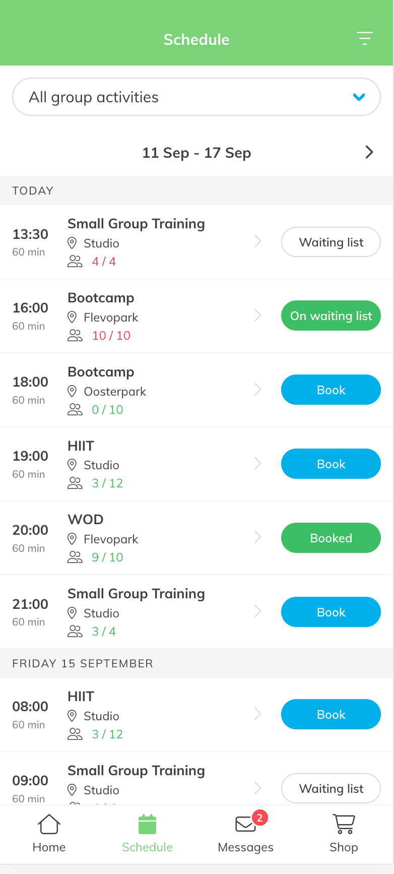 Make it easy to book classes and sessions